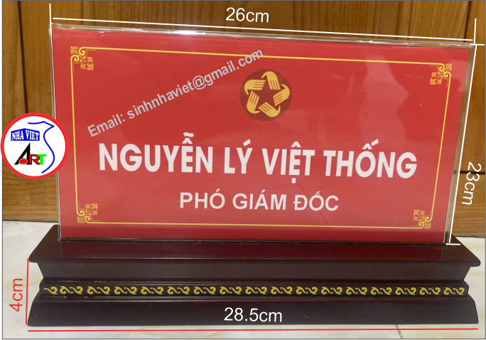 Bạn đang tìm kiếm một sản phẩm tinh tế, tiện dụng để thể hiện chức danh tại văn phòng? Bảng chức danh đế gỗ mặt mica (hay còn gọi là bảng tên để bàn) của Sinh Nhà Việt là lựa chọn hoàn hảo.
